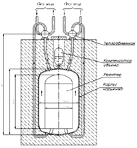 Активная зона с бериллиевым отражателем и медным коллектором помещены в корпус реактора с расположенной в нем теплоизолирующей перегородкой. Пространство между вышеупомянутым корпусом и медным коллектором заполнено водой и образует второй циркуляционный контур.