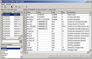 Для описания состояния моделируемого оборудования и его характеристик в базе данных тренажера создаются специализированные классы данных. Например, класс данных Sensors (измерительные каналы), класс данных Actuators (исполнительные механизмы) и т.д. На основе этих классов в БД заносятся списки объектов моделируемого оборудования и их характеристики.