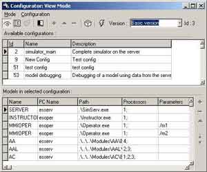 Для создания различных конфигураций и запуска тренажера используется утилита Configurator входящая в состав InSiDE. Данная утилита позволяет определять, какие модули будут задействованы при работе тренажера, на каких машинах они будут выполняться, какие процессоры будут использоваться.