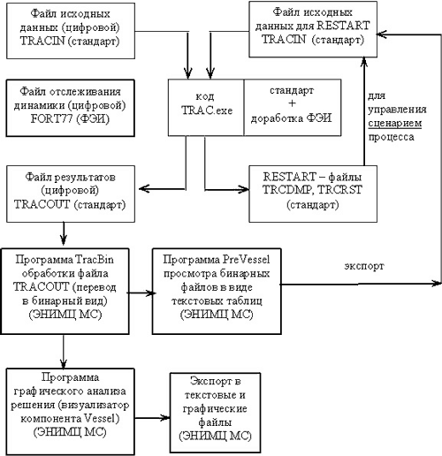 В связи с тем, что разработчики кода TRAC не поставляют графических средств обработки, в ЭНИМЦ МС была проведена разработка специального пакета программ (программы Fieldview, TracBin, PreVessel, Tracdiff) предназначенного для следующих целей.