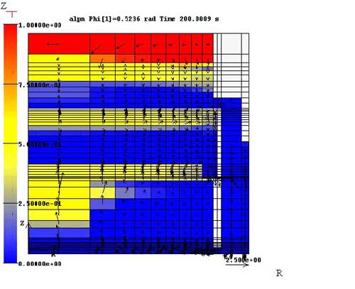 - Визуальный контроль процесса сходимости решения по расчётным полям векторных (6 полей) и скалярных (около 40 полей) 3-D величин.