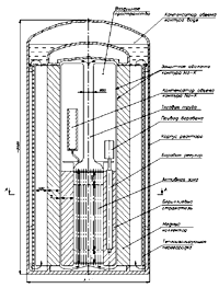 Активная зона с бериллиевым отражателем и медным коллектором помещены в корпус реактора с расположенной в нем теплоизолирующей перегородкой. Пространство между вышеупомянутым корпусом и медным коллектором заполнено водой и образует второй циркуляционный контур.